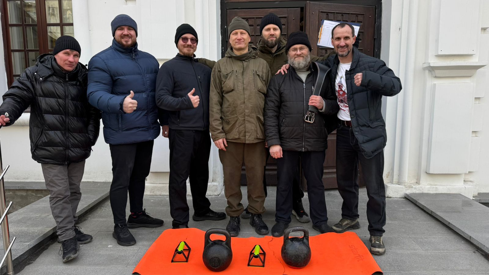 Служители алтаря соревнуются в силовом многоборье: подтягивание на перекладине, отжимания, гиря 16 и 24 кг. В этот раз в спортивный перечень вошли приседания с гирей - это упражнение очень полезно для ног, предотвращает развитие варикоза, укрепляет мышцы - актуально для тех, кто большое количество времени проводит на ногах.