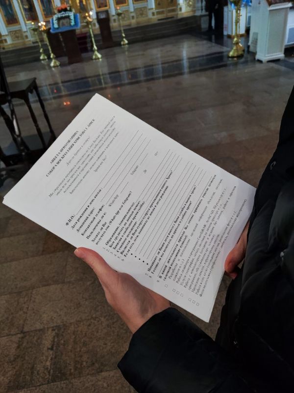 При входе в храме расположены распечатанные бланки, если у вас есть желание, вы можете заполнить его и опустить в контейнер рядом*.
