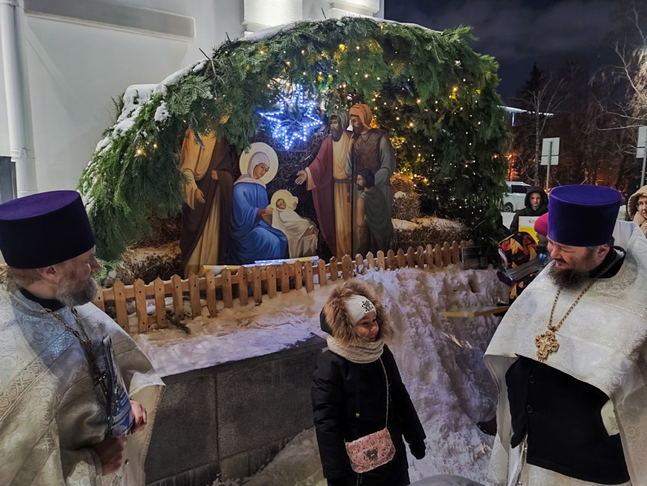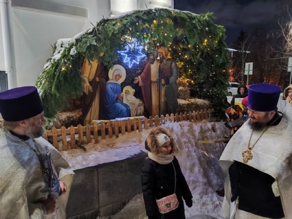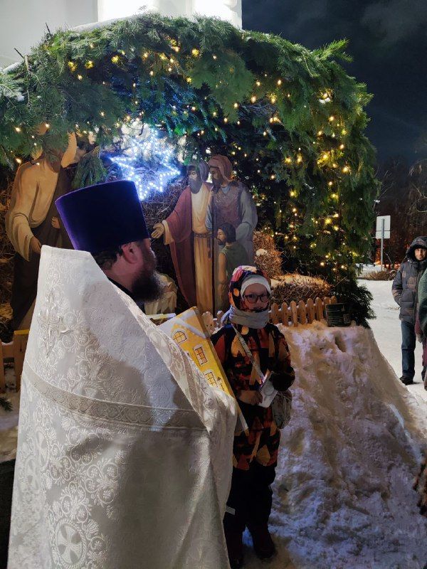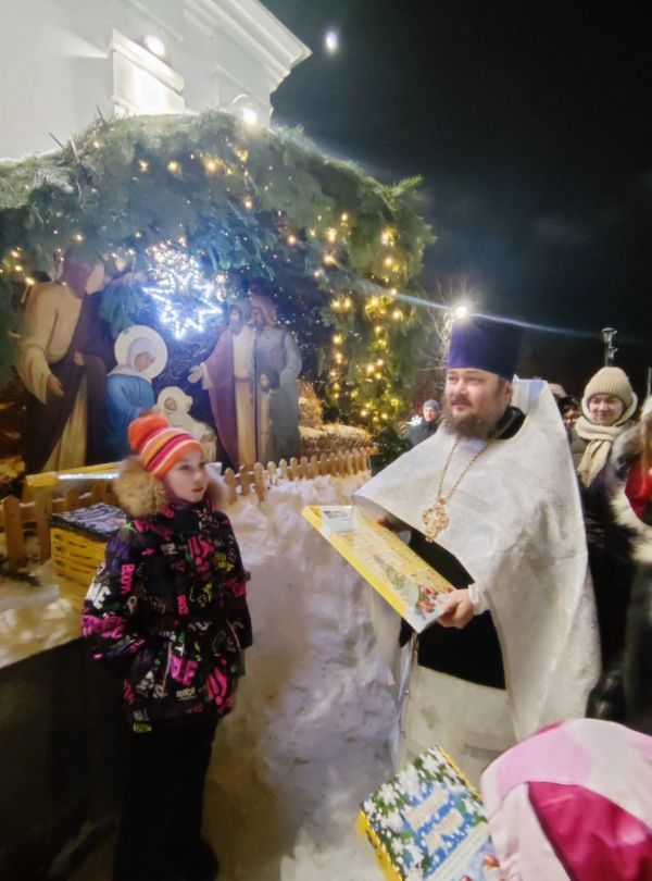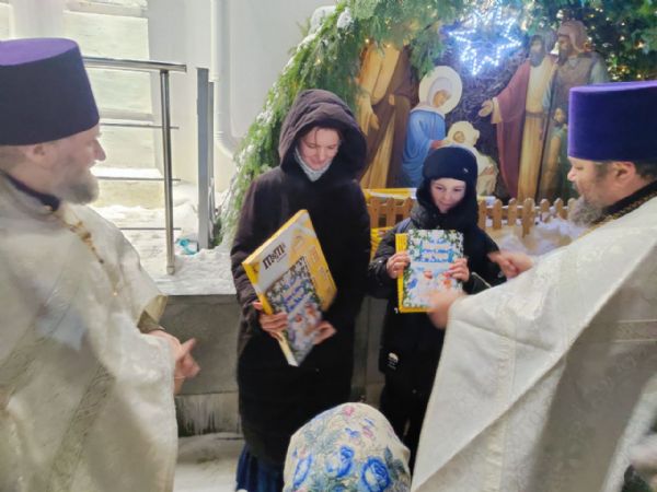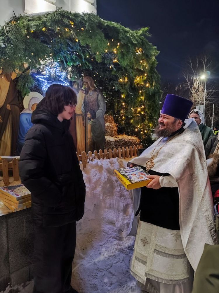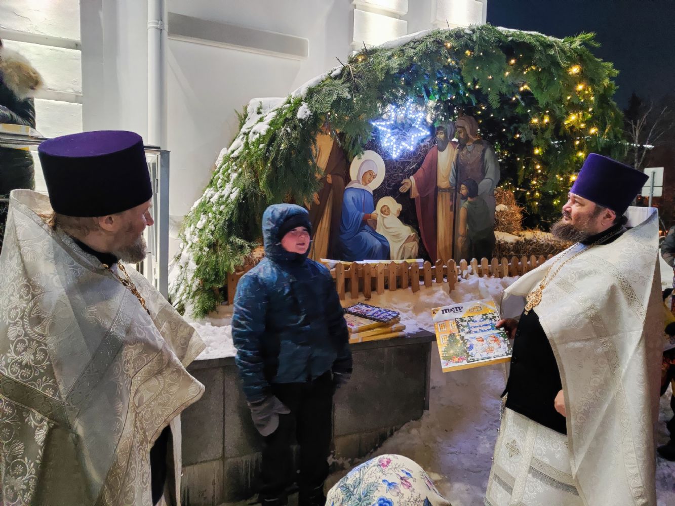 И после ночной праздничной службы, и после утренней – прихожане вместе с детьми собирались у вертепа и с большой радостью слушали наших юных Христославов: ребята исполняли колядки и читали стихи. Все получили сладкие подарки от настоятеля отца Олега.