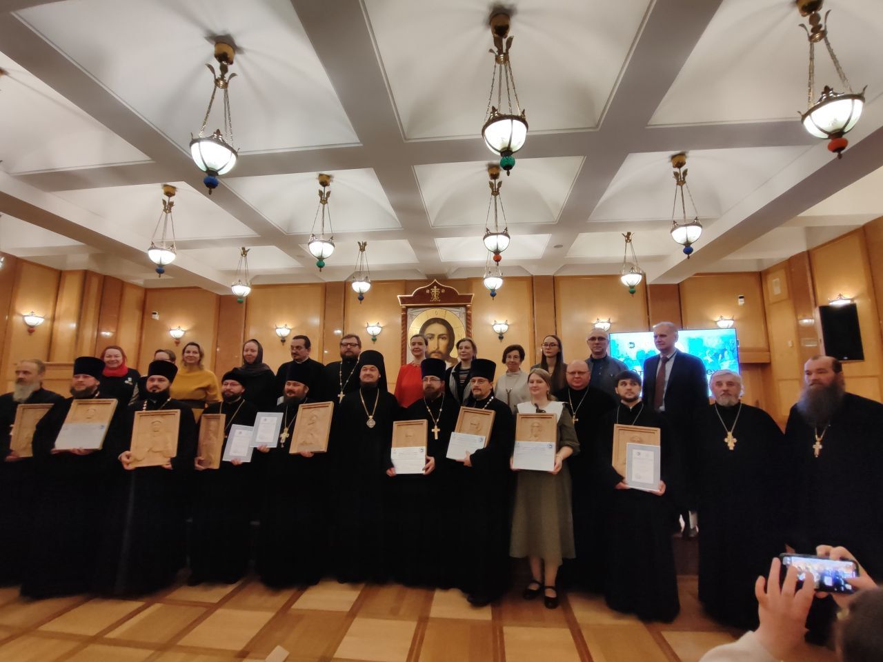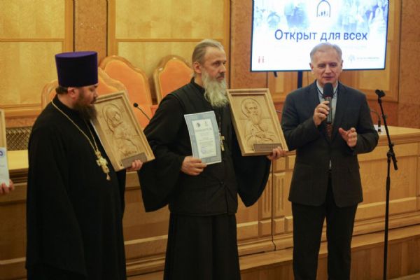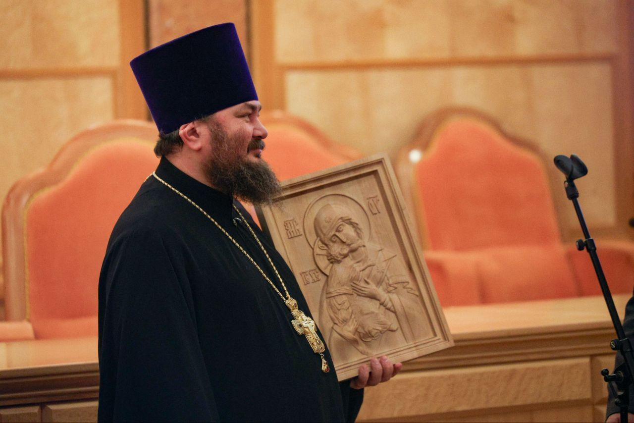 На церемонии награждения отец Олег получил диплом и памятный подарок — тактильную (резную) икону Божией Матери "Владимирская", созданную специально для слабовидящих и незрячих людей.