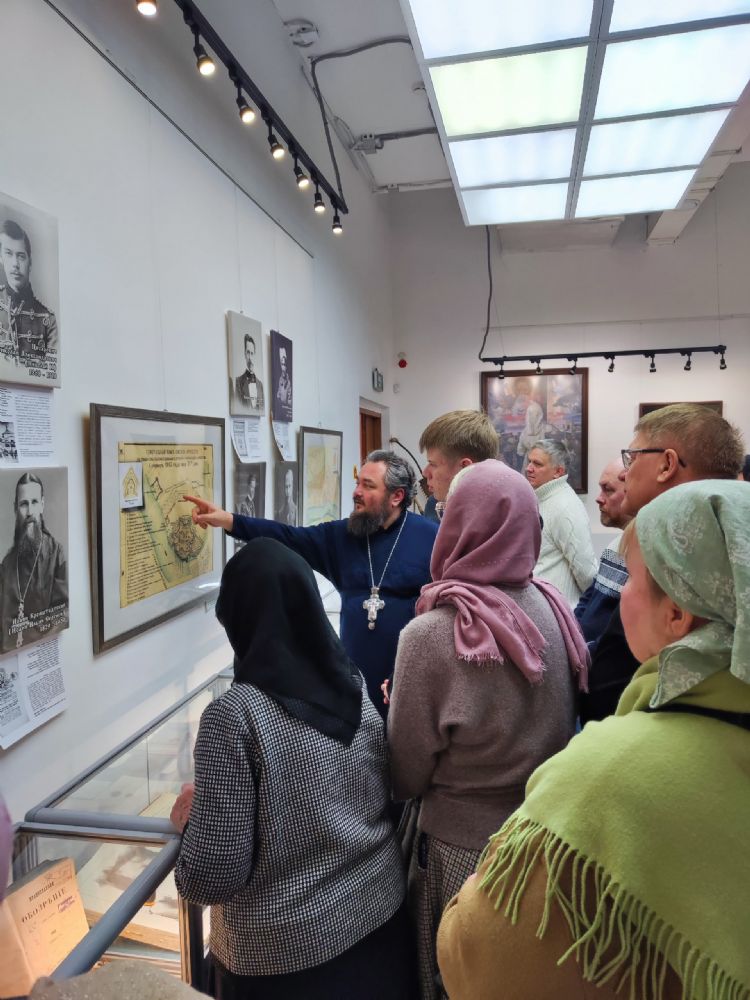 Слушатели взрослой воскресной школы побывали в выставочном зале Омского музея Просвещения, расположенном в Воскресенском соборе.