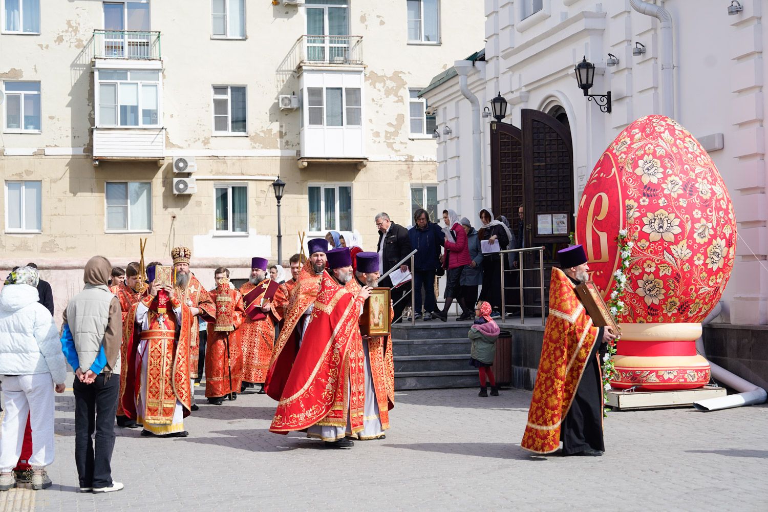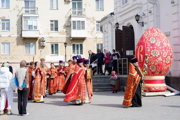 В этот день, 19 апреля, позднюю Божественную Литургию возглавил Глава Омской митрополии митрополит Омский и Прииртышский Дионисий. На праздничном Богослужении владыке сослужили настоятель Воскресенского собора протоиерей Олег Цветков, клирики нашего собора и других омских храмов.